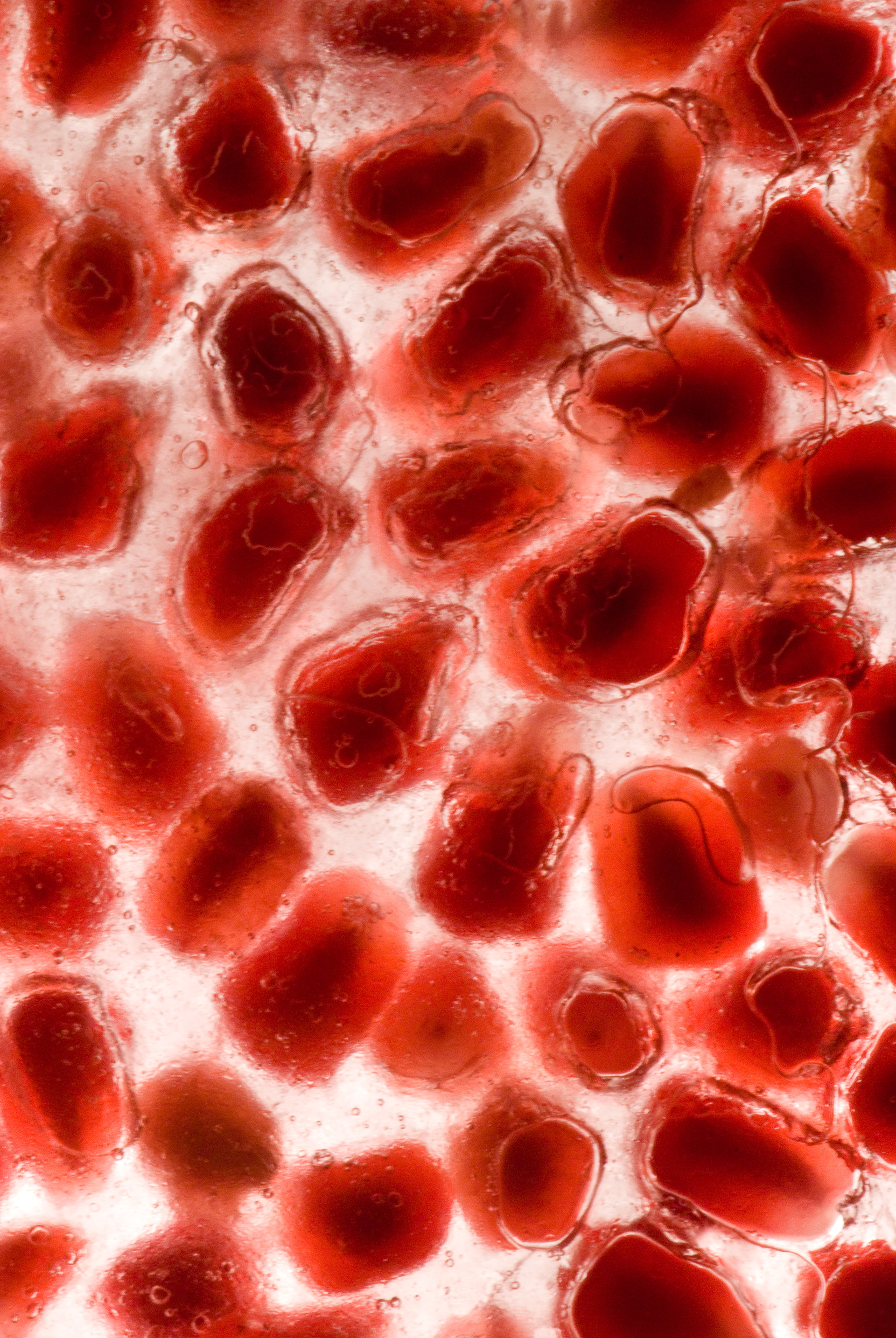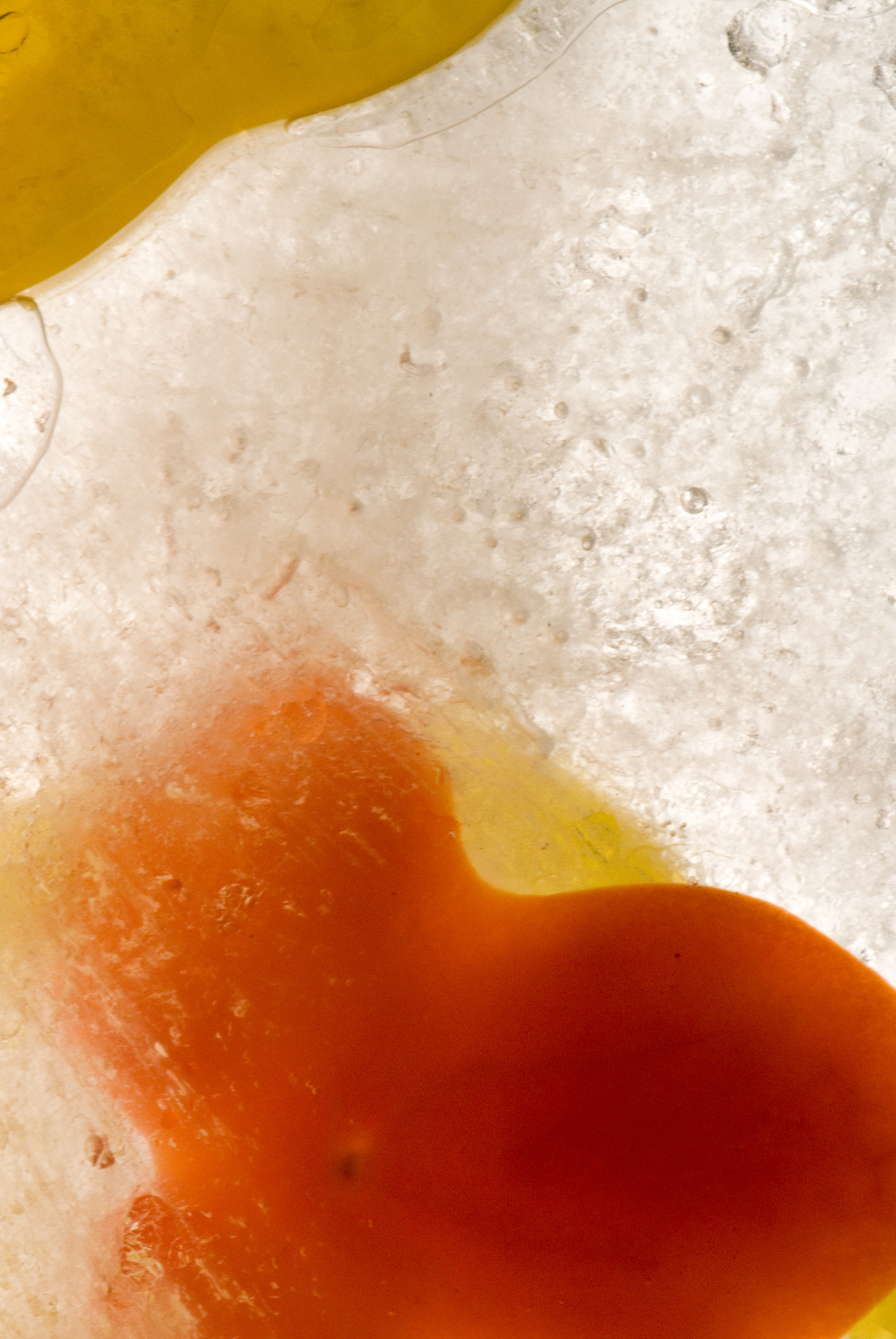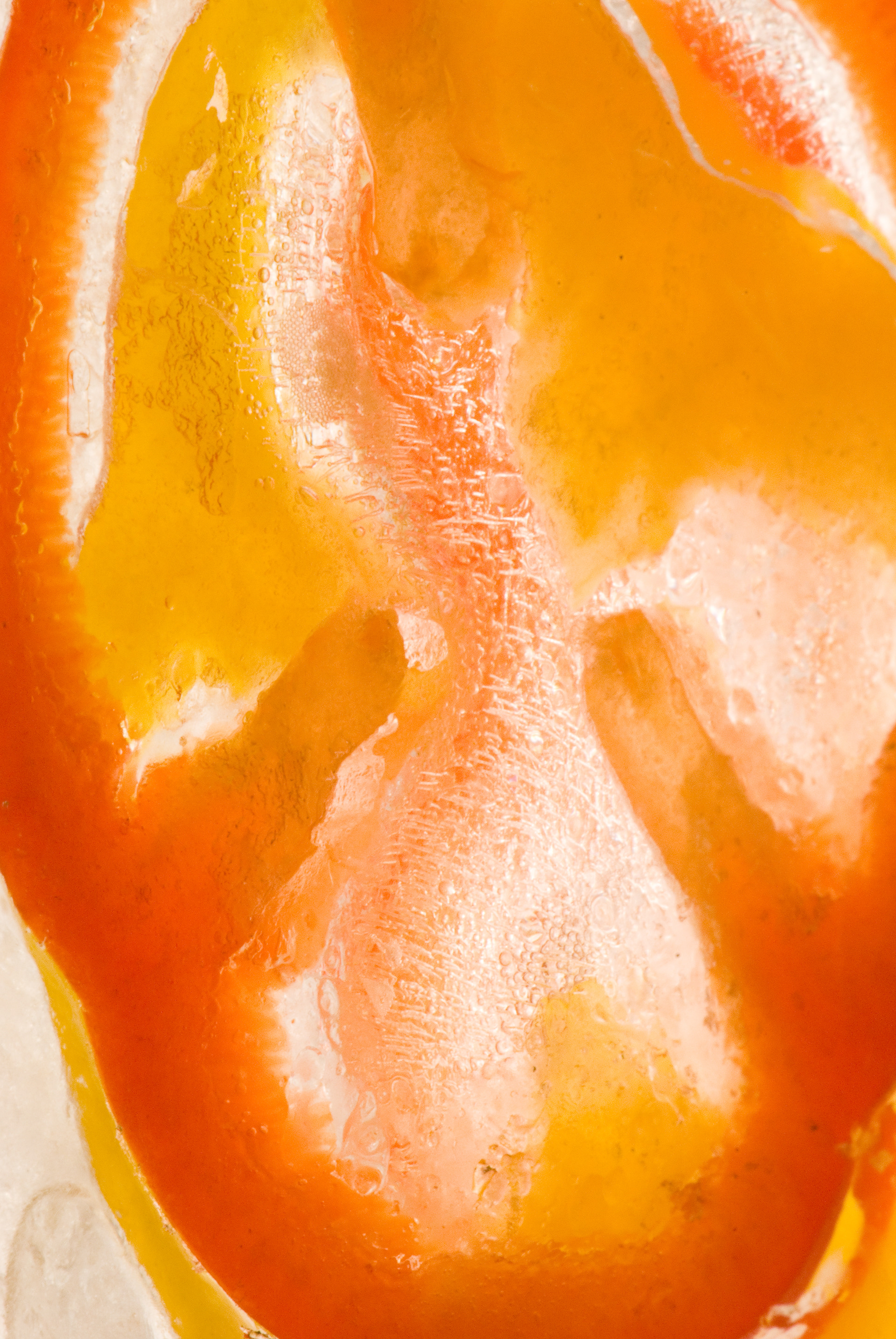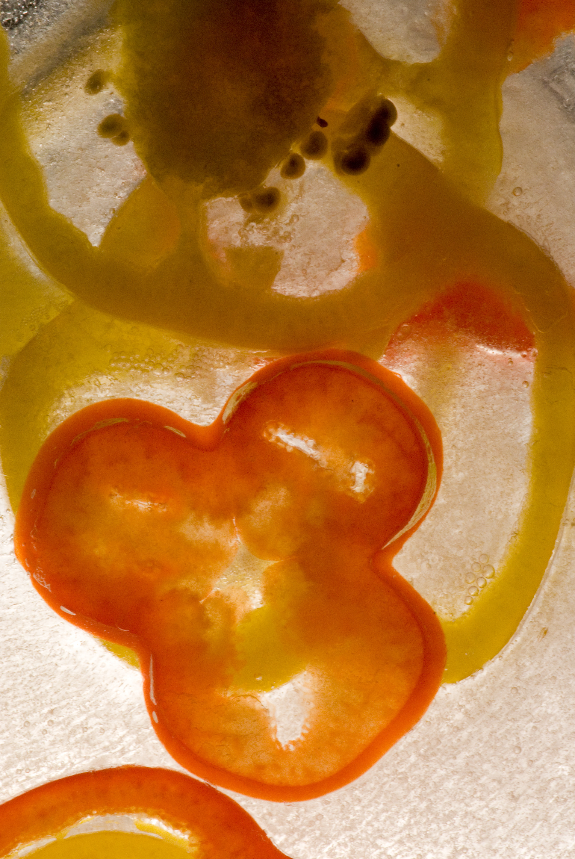 I created a series of photographs by freezing fruits and vegetables to capture the beauty of natural colors and the intriguing textures that ice and water create.